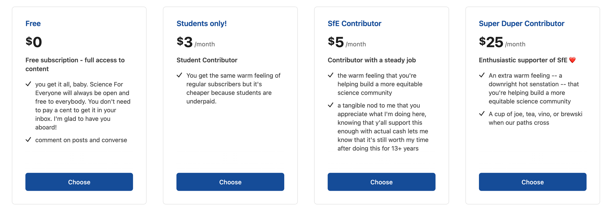 By the way, I realize that I haven't pushed paid subscriptions at all since I moved over to this new platform. Substack was very heavy handed about that, which is also another reason I moved on. But here, since I have removed all paywalls, I've not said a thing about it. So I thought I'd mention. If you appreciate the work I put in here, feel free to subscribe using the handy dandy button. As low as three bucks per month! Once I cover the costs of this site, I use the funds to support junior scientists in need. For example, I just allocated some to student conference travel awards (managed by the International Union for the Study of Social Insects).