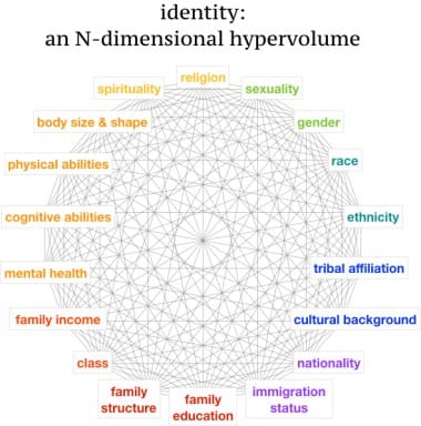 Figure 1: A person’s identity, like an ecological niche, is comprised of infinite dimensions, some of which are included in this depiction of “identity space”